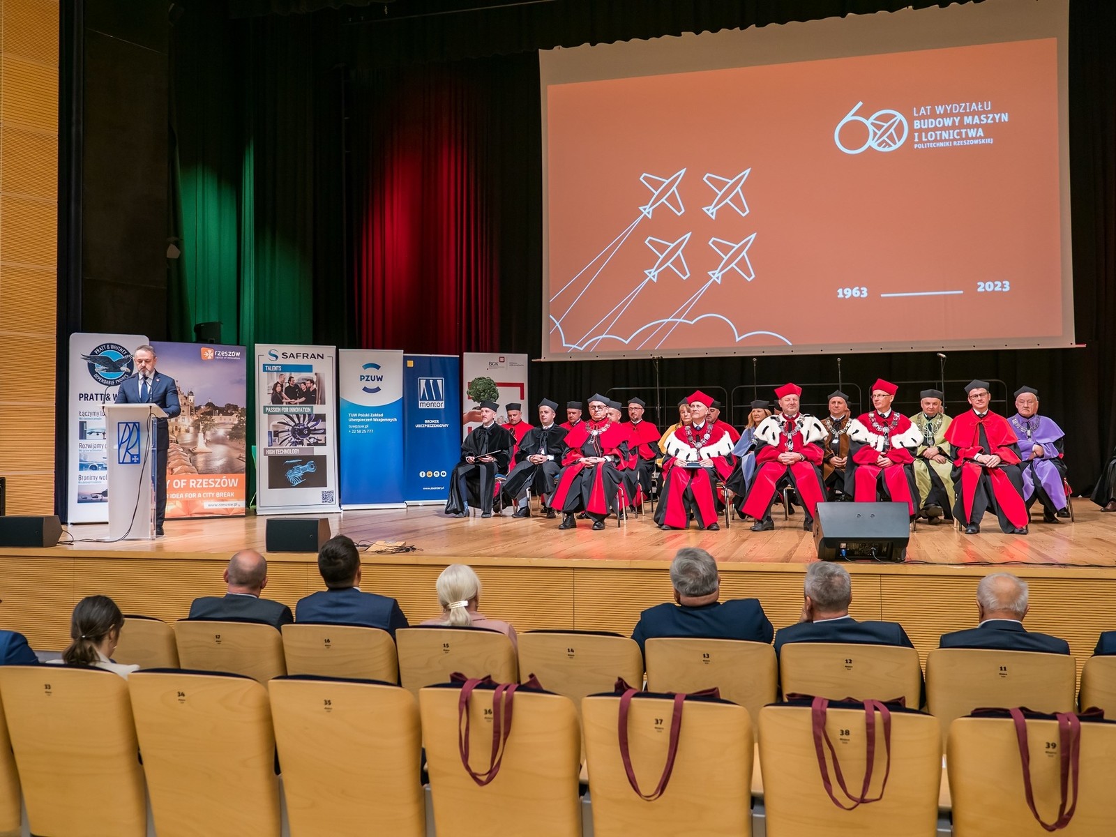 Gratulując pięknego jubileuszu, członek zarządu województwa podkarpackiego Stanisław Kruczek powiedział: „Nie byłoby Doliny Lotniczej, nie byłoby naszej inteligentnej specjalizacji, jaką jest lotnictwo i kosmonautyka, czy nawet sama motoryzacja, gdyby nie ten właśnie wydział. Ta historia zaczęła się w zasadzie od tego, że na ziemiach podkarpackich ulokowano Centralny Okręg Przemysłowy i tutaj zaczął rozwijać się cały przemysł lotniczy. WSK, Mielec czy Huta Stalowa Wola – oni potrzebowali i potrzebują was nadal bezwzględnie. Życzę dalszego, tak wspaniałego rozwoju na kolejne lata.”