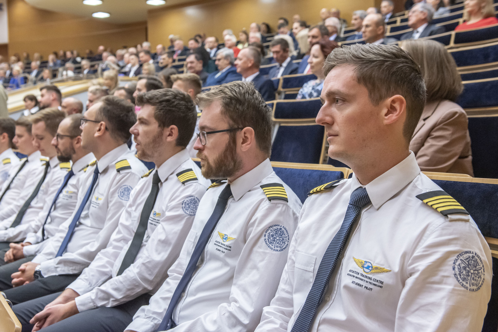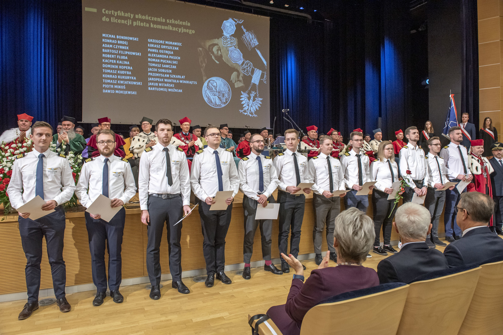 Po odśpiewaniu przez Chór Akademicki Politechniki Rzeszowskiej Gaudeamus Igitur zostały wręczone certyfikaty ukończenia szkolenia do licencji pilota komunikacyjnego. Tę część uroczystości poprowadził prorektor ds. rozwoju i współpracy z otoczeniem prof. dr hab. inż. Jarosław Sęp. W tym roku 23 studentów kierunku lotnictwo i kosmonautyka, specjalności „pilotaż” zakończyło szkolenie i uzyskało certyfikat. Pilotom rocznika ATP-18 certyfikaty i pagony wręczyli JM Rektor i dyrektor Ośrodka Kształcenia Lotniczego dr inż. Arkadiusz Rzucidło.