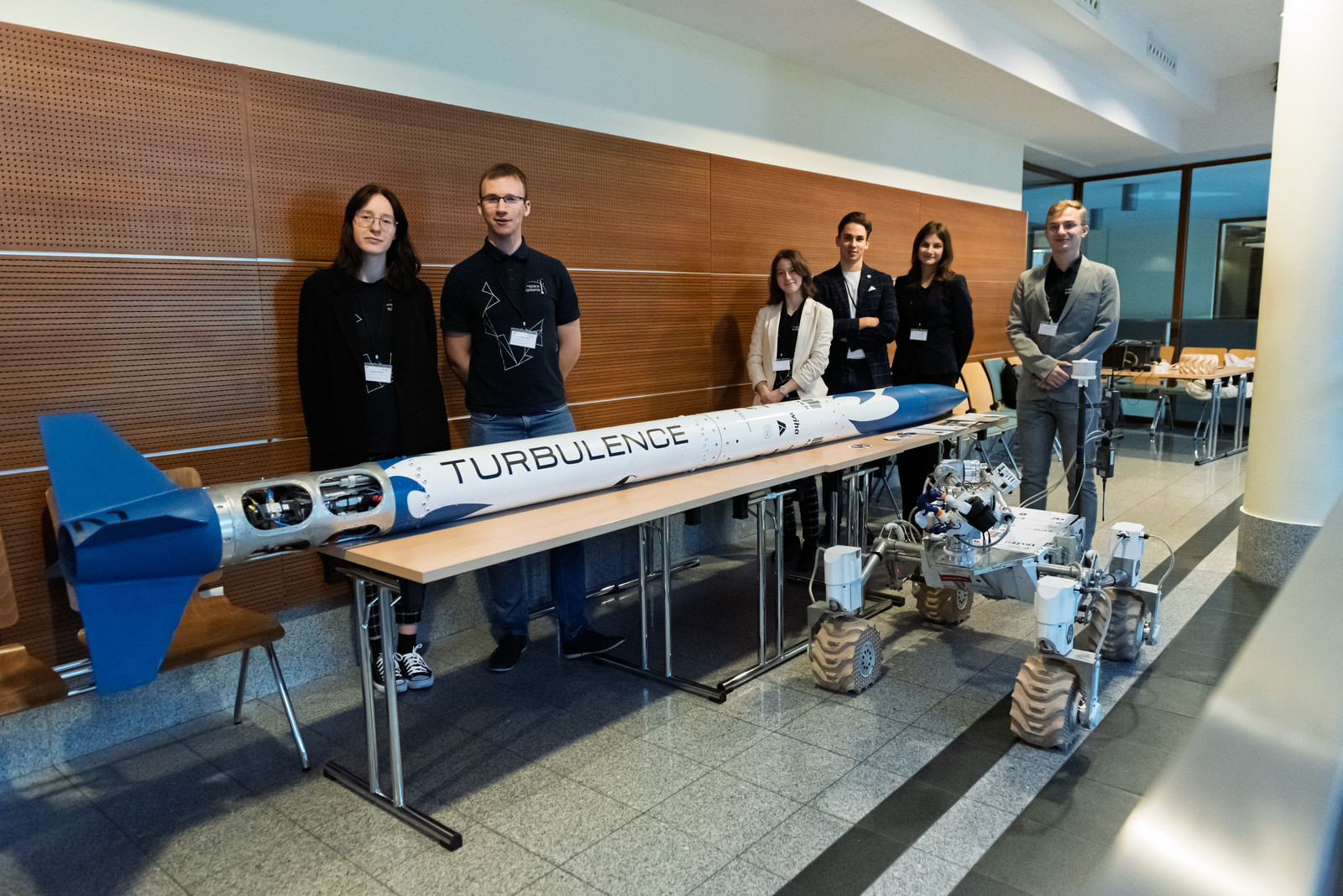 W wydarzeniu wzięli również udział studenci z kół naukowych Politechniki Rzeszowskiej, Politechniki Warszawskiej oraz Akademii Górniczo-Hutniczej w Krakowie. Naszą uczelnię reprezentowały dwa koła. Studenci Koła Naukowego EUROAVIA przedstawili plany na 2025 r. dotyczące udziału w SAE Aero Design 2025 EAST, natomiast studenci Koła Naukowego Inżynierii Kosmicznej zaprezentowali swoje osiągnięcia w zakresie misji kosmicznej w Space Challenge. Koło Naukowe AeroDesign z Politechniki Warszawskiej przedstawiło projekt dotyczący systemu rozpoznawania obrazu oraz lotu autonomicznego w samolocie Pterodaktyl. Technologie kosmiczne to temat wystąpienia członków Koła Naukowego AGH Space Systems.